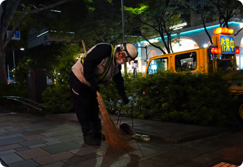 道路に落ちているゴミ、紙くず、空き缶、ペットボトルなどの回収や、落ち葉や砂埃の除去をします。