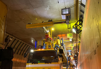 火災検知器やスプリンクラーを設置し、トンネル内の安全を確保。